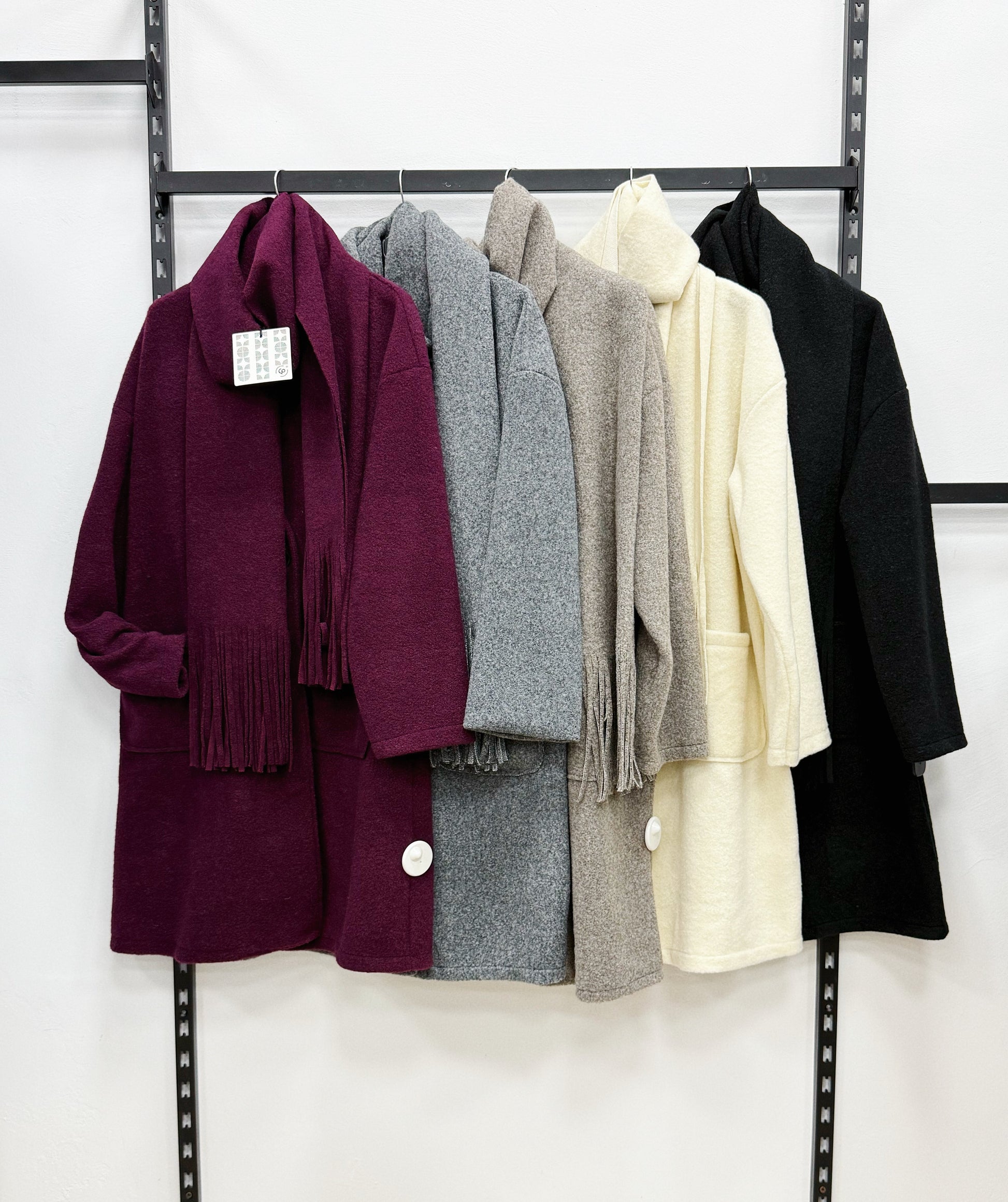CAPPOTTO SCOLLO A V CON SCIARPA A FRANGE