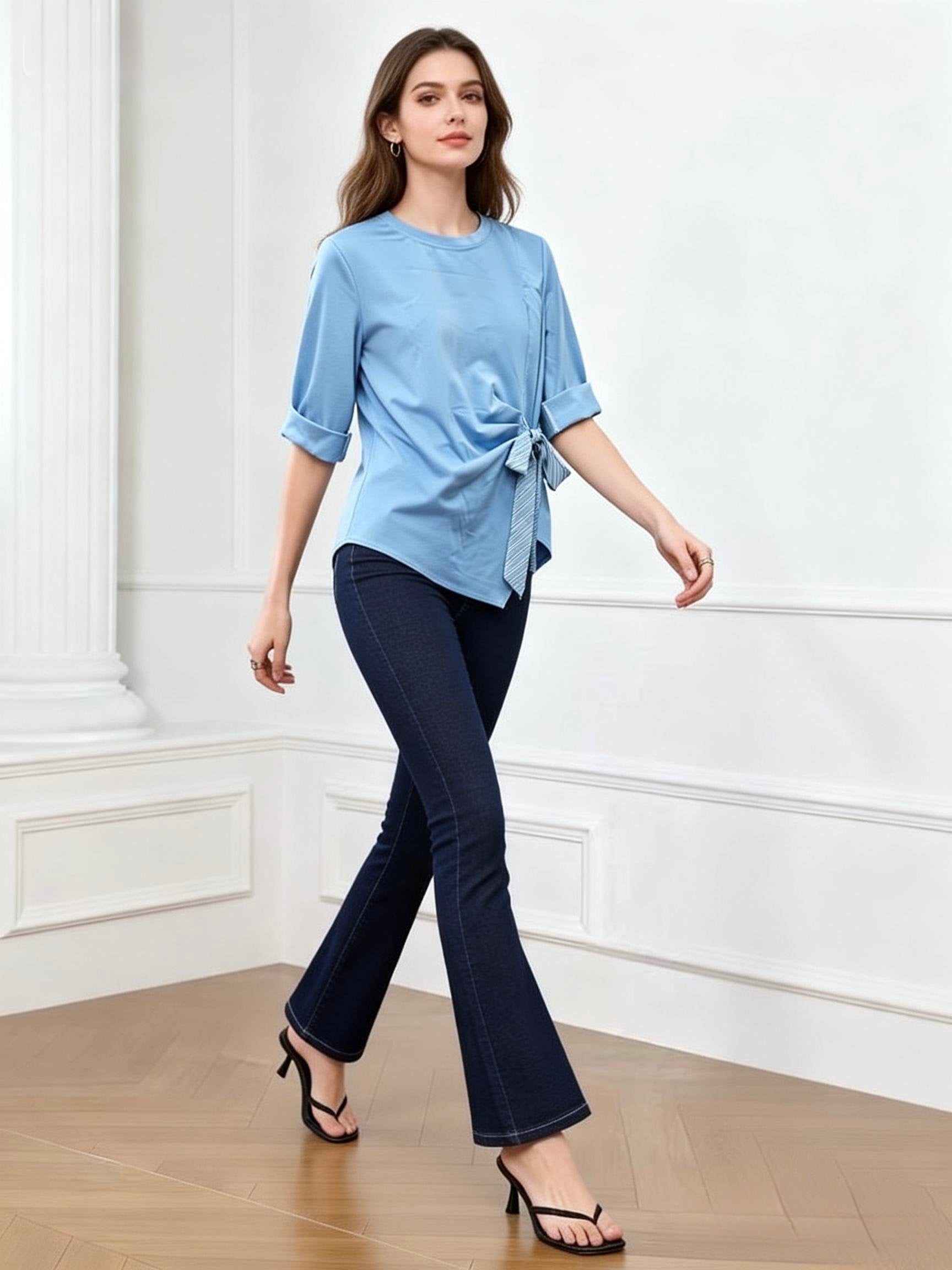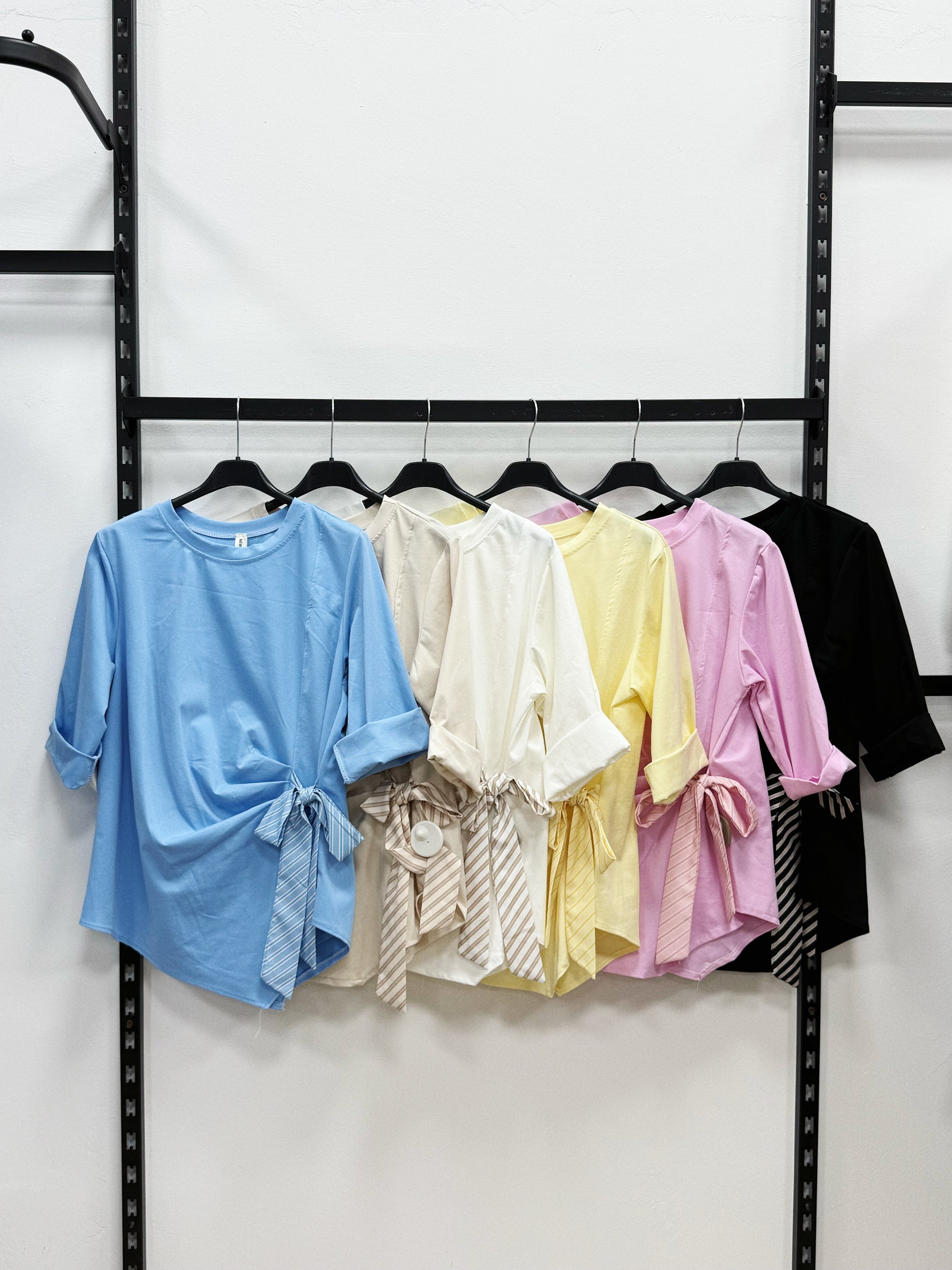 MAGLIETTA DI COTONE A MANICHE 3/4 DI LATO LACCIATO